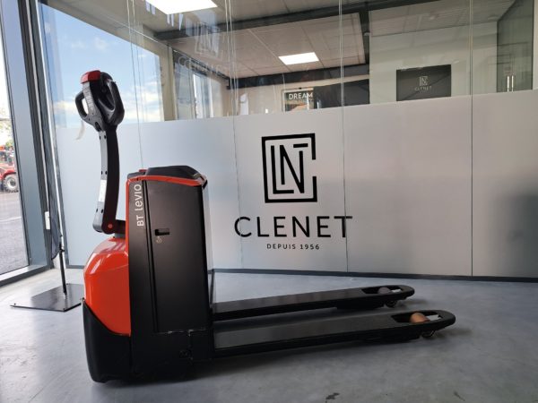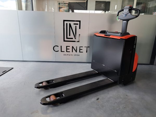 - Timon - Poignées courtes / Logement batterie moyen-couvercle composite-sortie par le dessus / Roue directrice Topthane / Fourches 1150x550mm / Galets simples polyurethane avec axes inox et graisseurs / Roues stabilisatrices polyuréthane largeur 50mm / Bavette metallique garde au sol 30mm / Avertisseur sonore / Clavier code / Batterie plomb 24V 225Ah / Chargeur monophase haute frequence 12 heures