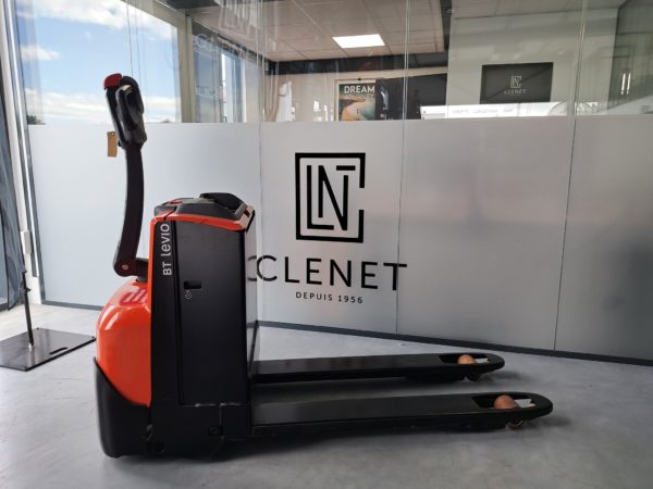 - Timon - Poignées courtes / Logement batterie moyen-couvercle composite-sortie par le dessus / Roue directrice Topthane / Fourches 1150x550mm / Galets simples polyurethane avec axes inox et graisseurs / Roues stabilisatrices polyuréthane largeur 50mm / Bavette metallique garde au sol 30mm / Avertisseur sonore / Clavier code / Batterie plomb 24V 225Ah / Chargeur monophase haute frequence 12 heures / BATTERIE NEUVE